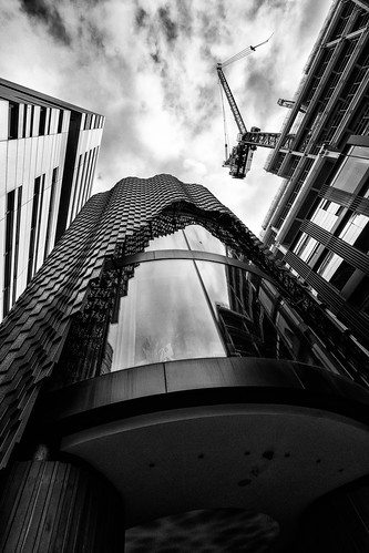 I enjoy the sharp contrast and good tones in the top two thirds of this image although I think I would have cropped out the bottom third. The addition of the crane works well against the sky and well done for looking up and spotting this composition. |