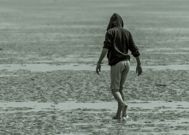 A simple shot at first glance but there some good details such as the figures placing within the picture space.. I'm not sure about the colour of the image, I might have opted for monochrome or maybe a blue tone instead of this green tinge. The timing is spot on with the little splash of water under the subjects foot |