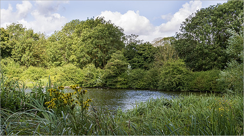 There is more to this picture than first appears. The foliage forms a nice frame and the yellow flowers add something extra. I also like how the clouds seem to mimic the shape of the trees. The only minus point is the empty space in the middle. A group of swans or something similar would have completed this. |
