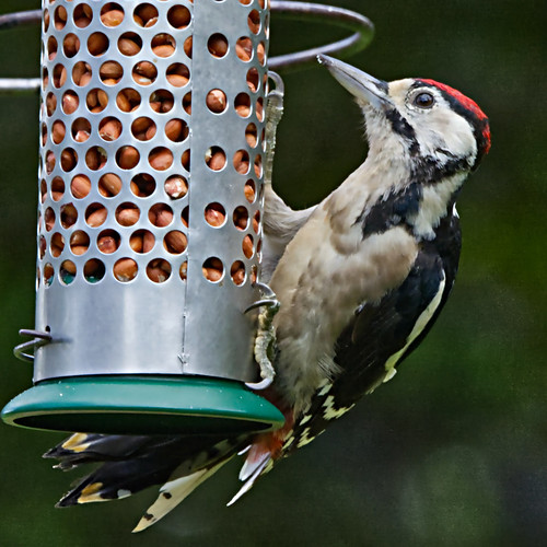 This is a nicely timed image that is also a good composition. The bird feeder is nicely placed but the best part is the bird itself which is captured in a great pose. It is unfortunately not sharp with a loss of detail in the feathers but otherwise the exposure is god giving a nice contrast range. |