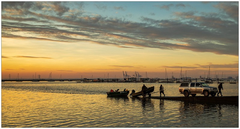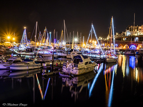 This is a striking image. I particularly like the shapes created by the lights in the water which mirror the triangular shapes throughout. The colours are lovely and bold too. As a night shot I would have tried this a tad earlier when there is still colour in the sky as this often adds a deep blue hue which would work well with the lights here. The horizon does seem a little lopsided which is a shame but still a striking, well taken night shot. |