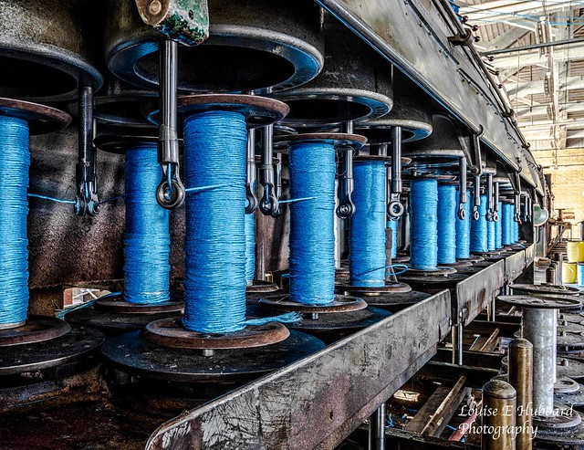 The treatment applied to this has certainly added an industrial feel. The metalwork comes across as cold as it should whereas the blue tones of the yarn sing out in contrast which is surprising as blue, of course, is a cold tone itself. To the right of the image we have lighter tones which still retain detail and overal the image seems to convey that the yarn is heading towards this light. At first glance this seemed to be a straight forward image but the more I look at it the more of a story I am perceiving. |