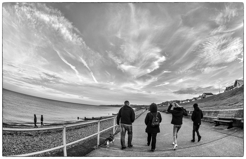 The fish eye effect here whether in camera or in post processing has been carefully and skillfully applied. The various lead in lines and the sky detail have been carefully arranged and it is interesting how the least distorted area is the group of people. The original composition and monochrome is very good and it is up to personal taste if the fisheye effect adds to or takes away from the image. I like it. |