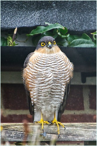 The bird has posed nicely for the photographer here with a purposeful look in his eyes. I like the sharpness and the detail in the birds' plumage. I think I would have cropped off the top grey area and the bottom of the image up to the wood which I think strengthens the composition. Well captured. |
