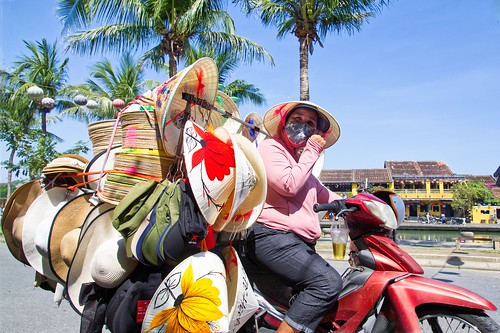 A very colourful and uplifting image with a story. There are some great details here including the drink hanging off the handlebars! It is a shame that the tree is growing straight out of the subjects head which could have been removed in post processing but I imagine at the point of taking time was short. |