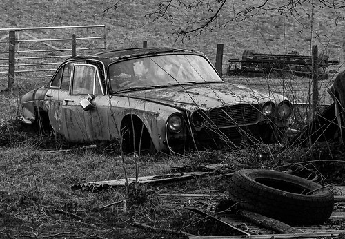 This sad looking Jaguar/Daimler certainly has seen better days! With the exception of the pristine looking gate in the background this is a scene of utter dereliction and the use of monochrome has really helped to accentuate that. I think I may have toned down the bright gate but otherwise this is a good image with a nice back story. |