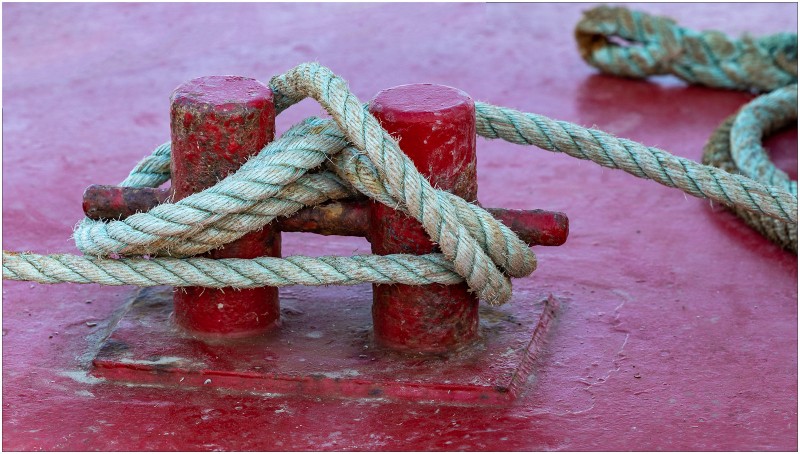 This is a nicely seen image. There is tremendous detail in the rope and I like the contrast between the fibres and the metalwork. I'm still debating about the out of focus rope end in the background but I am impressed by the contrasting colours. |