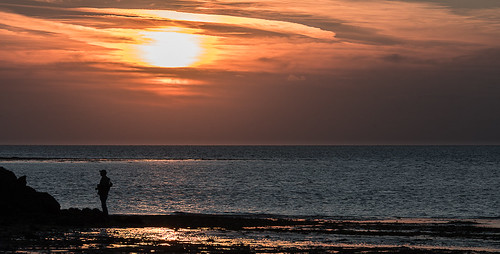 Sunsets are often a happy hunting ground time for great shots with its attendant colours and lighting effects. Having the figure on the left and looking out of the image breaks rules maybe but is ok for me. The bright burnt out area of the sun is a bit too distracting for me though and the image colours are a little muted indicating possible underexposure. However, I like the story which has added greatly to the image. |
