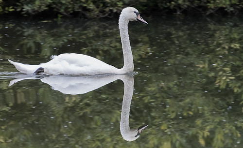 Pretty much a near perfect reflection and well done in retaining the detail in the highlights. Reflections are often a lower exposure but good to retain those whites on the top surface image. The muted lighting has helped of course. Composition is also well arranged with a sense of movement created by giving the bird space to move into. |