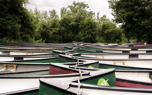 The leading line created by these boats prows up through the centre of this is well seen and well arranged in the composition. However, the line leads to the back of the boats and then ends. If possible for me another element is required for our eyes to rest on at this point I think. As taken the image composition is also much strengthened if the background foliage is cropped out completely and just the boats are left to fill the frame. This really then accentuates the patterns and lines within this image. |