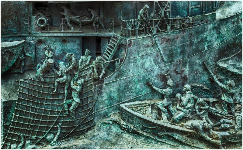 I have seen this memorial and in fact have photographed it myself and there are many scenes such as this that can be taken from it. This has been carefully selected and framed very well. The verdegris colour works well and the detail is great. This is a very good record type shot of the monument and although there is no indication to the size of this piece it is still a great shot. |