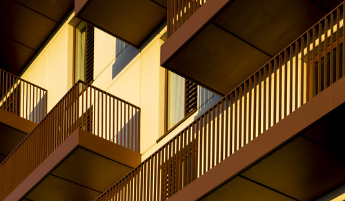 The shapes, colours and lighting work well here but I feel there is something missing. Perhaps one of the neighbours on one of the balconies is the answer. Still well seen and the area selected works as a nice composition. |