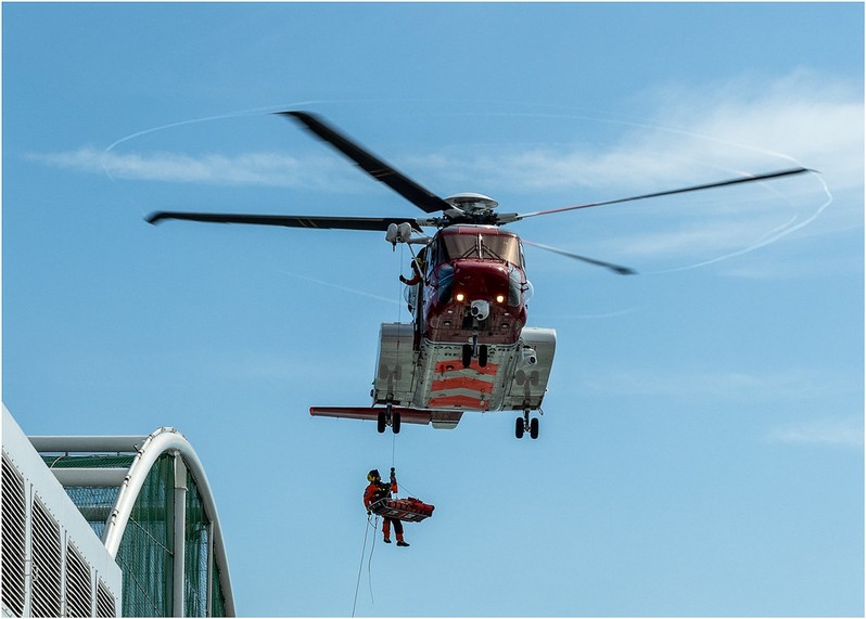 At first glance this could easily be perceived as an easy shot to take. However, the real skill here has been using a shutter speed that gives movement to the rotor blades whilst retaining sharp detail elswhere. (Too fast a shutter speed would freeze the movement in the blades and create a model helicopter look). The icing on the cake here is the white circular trail between the rotor blades. |