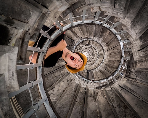 I'm not sure if this as taken or is a composite image but no matter I really enjoy the story here. The figure is well placed and the colour makes him stand out. It is good to see the end of the spiral staircase over their shoulder as well. I like this very much. |