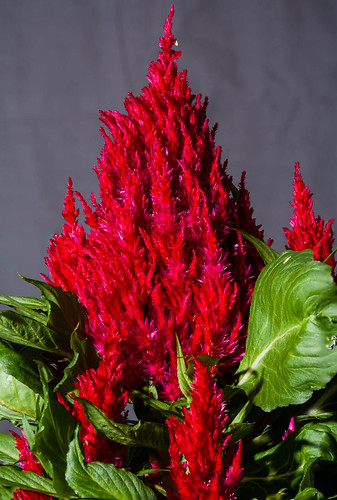 What an interesting plant. The vibrant reddish colour contrasts brilliantly with the green foliage. This is a simple composition but the arrangement of the colours within the space is good. It is a little tight in the frame at the top and I think the saturation is a tad overdone in the reds but as I said the two colours work well together. |