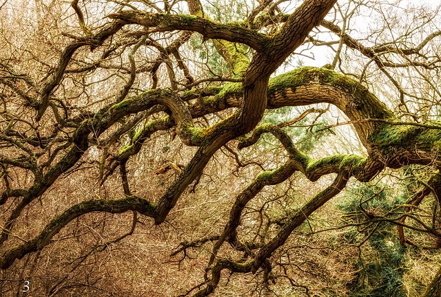 This is a wonderful tree study. The branches resemble arms from a Tolkein type scenario. The detail is very well rendered. (I resisted the urge to say tremendous there!). The title is a little misleading as the green moss is a small part of the image although its inclusion adds a great extra colour to the image. |