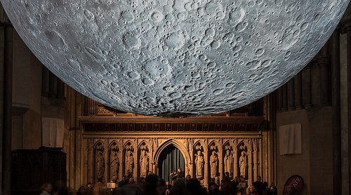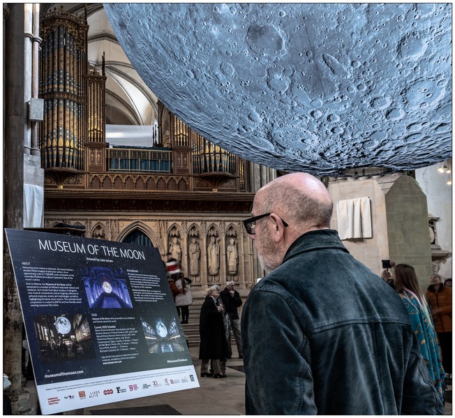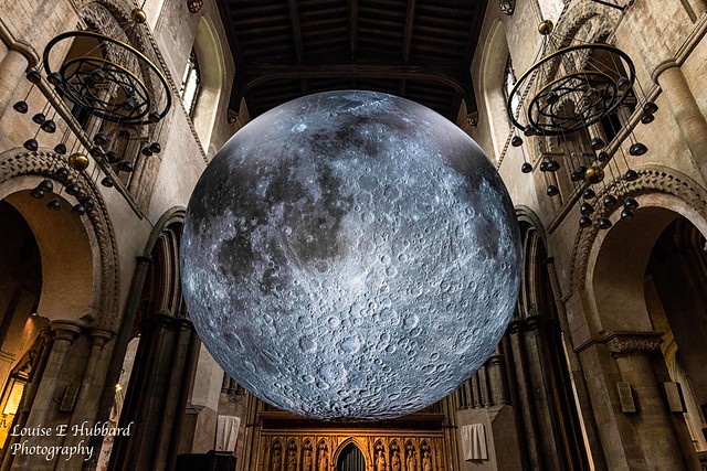 Without prior knowledge of this artwork this could easily be a composite image.The Moon detail is excellently captured. The background does suffer from problems often encountered in buildings such as this with uneven lighting. There are burnt out highlights in the walls and stained glass window. In this situation it can be a good idea to bracket exposures. The Moon artwork has featured in a number of images in this competition but well done on finding a different viewpoint from the others. |
