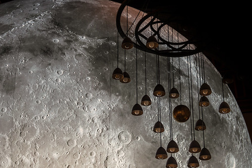 This art installation is very impressive and well done on looking for a less than obvious composition. The light fittings work really well apart from the ones that are unfortunately cropped at the bottom. The Moon detail is excellent with great exposure and focussing. |