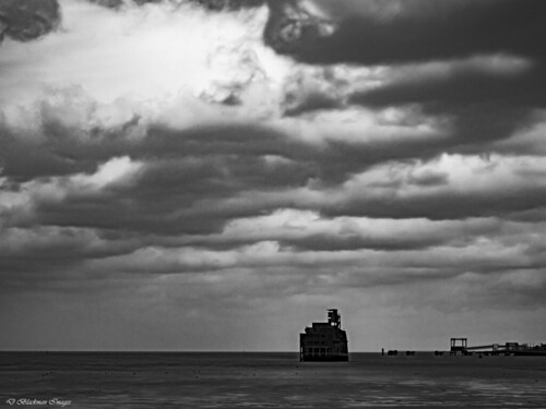 The fort providesd a great 'zing' point for our eyes to rest on here as it is nicely placed. The sky is certainly moody and grainy indicating that it has possibly been enhanced. I would have been tempted to go further and darken the darker tones even more making it exta moody and also cropping out the large bright expanse. Monochrome was a good choice here. |