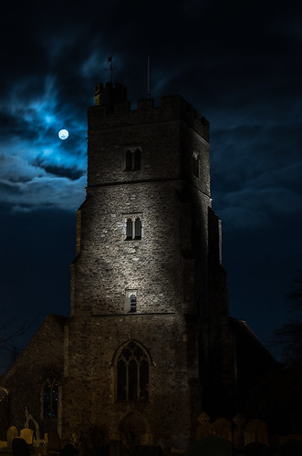 There is a real atmosphere to this image. It has been well timed to capture a dep blue hue to the sky and the highlights on the church are well exposed for. The shadow areas are a little too dark and the uneven lighting from an unknown source is a little unfortunate. The Moon is well placed and this is a well thought out image. |