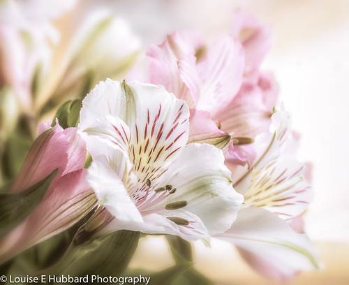 A very restful and calming image. The foreground blooms with their pastel tones are very well rendered. The background flowers are very bright and the brightness on the edges does take our eyes away from the main subject. There is some great detail in the head of the foremost flower. |