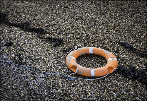 This a nice exercise in image construction. The life belt is placed on the third and there are natural lines that lead us to it. I think I would have cropped the top slightly but that orange colour really sings out well from the surrounding dull colours. |