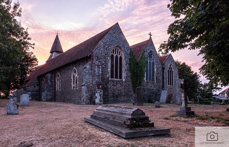 This is a nicely detailed image of this church. The stonework in particular is very well rendered. The image looks to have been taken at sunset as the sun is obviously behind the church and there is colour in the sky and also an overal red tinge. With these sunset colours in the sky I would have darkened and emphasised these to turn this into a more pictorial image. Using the grave in the foreground has created a nice composition. |