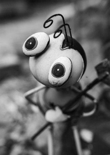 Someone has been having some tabletop fun here. The photographer has isolated the eyes to great effect by using a shallow depth of field and focussing on them. We know that bees are yellow and black so I am a little unsure about the monochrome treatment which has created a confusing background that keeping in colour may have avoided. I do like the dynamic viewpoint. |