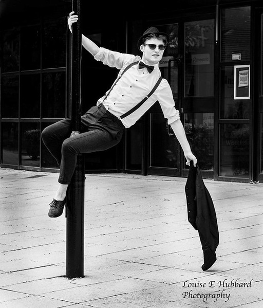 In the days of the darkroom this could have been described as a 'soot and whitewash' image as the contrast is quite high but it still retains some mid tones. I must admit that apart from the cinema in the background I don't quite understand the title. As mentioned the contrast is high but I do like how the figure is separated from the background. It is a shame that the highlight detail is lost in the paving slabs but is nicely retained in the shirt and trousers. |