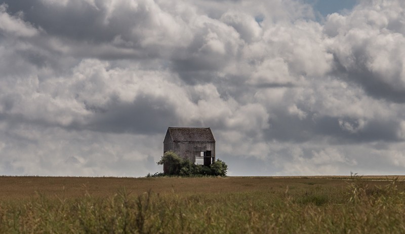 A simple image showing this lone building facing the elements. It comes across as being straight from the camera but I can see this is the basis for a great deal of manipulation. The tones in the grasses and that fabulous sky are crying out for a moody monochrome treatment. As presented there is a white outline around the building which does suggest some over sharpening in post processing. An image with great possibilities. |