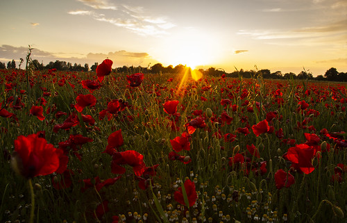 This is a striking image. The backlighting works extremely well and the red against the green is very effective. Even small details such as the daisy type flowers are a nice addition. I am a little concerned with the huge burnt out area caused by the sun and I am wondering if a later image with the sun partially covered by the foliage would have reduced this. It should still be possible to obtain the excellent backlighting displayed here. |