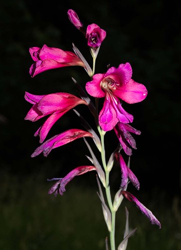 This is a well seen composition with all the heads semi or fully closed apart from one. Sharpness and detail are good as is the colouring. On camera flash has created some harsh lighting with deep shadows. Luckily the background still has some light to show this is outside. The specimen chosen is not in the best condition but as I said earlier I do like the composition. |