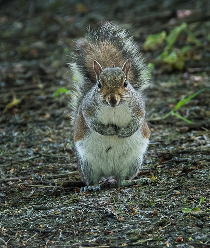 A nicely captured image. The little chap certainly looks to be posing nicely for the camera. Sharpness, focussing and exposure are very good topped off with that all important eye contact. The image is a little on the cool side and I may have tried warming it up a little. With all that available quality in the squirrel I think the image would stand being enlarged a little to further fill the frame more. Nice. |