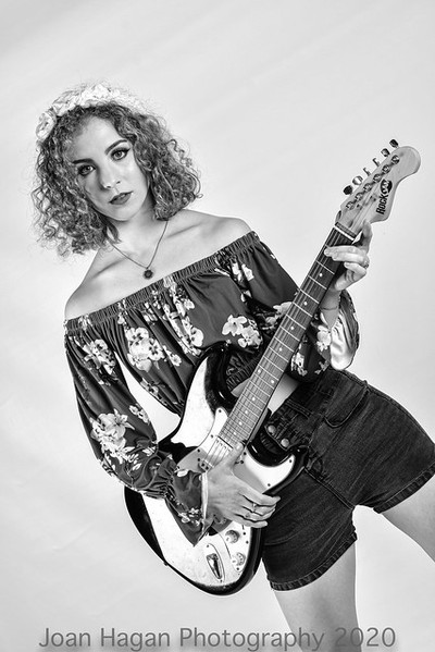 The quality of the monochrome here is first rate. The sharpness and the tones are spot on.The guitar is a great prop although it is not plugged in of course. I'm not sure if the Dutch tilt is for me but it certainly adds dynamism to the image. A very competent and high quality portait. |