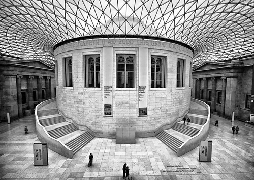 This is a well photographed subject and why not as it includes all the ingredients for a great shot. The mnonchrome treatment works well and I am amazed at so few people in the shot. The image was well photographed and quite symmetrical but I would have cropped it slightly on the right to make it completely symmetrical. The figures at the base are a bit tightly cropped but overal I like this image of the British Museum. |