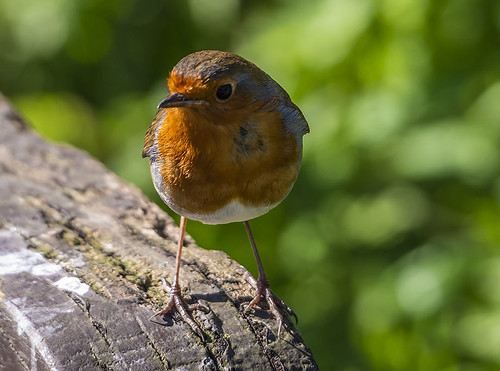The robin certainly posed nicely for this. It is also a nice size in the frame and I do like the diffused green background. It is a little unfortunate that we are presented with the shadow side but the exposure used has captured both highlight and shadow details. |