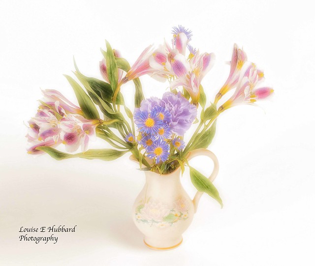 High key and pastel colours have worked well here. The high viewpoint has ensured maximum depth of field and allows us a good view of the blooms. The bright background appears to be brighter on the right hand side and I would have cropped this a bit tighter on that side. A pleasing still life with a painterly feel to it. |