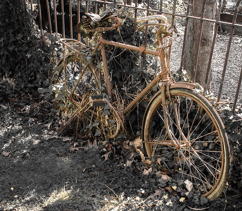 I have restored and indeed use old pushbikes so this poor rusting Raleigh caught my eye. Bit far gone now but there was some useful components on this! Everything in this image shows how long this unloved machine has languished here. The heavy rusting and the vegetation all work together well to tell the story. The contrasty lighting has created some bright areas which is a little unfortunate. For me I would be inclined to return on an overcast day and take the same shot but in monochrome and maybe add a sepia tone. A bit cliche maybe but I think this is the perfect subject. In fact the more I look the images I can see in this subject. Very well spotted. |
