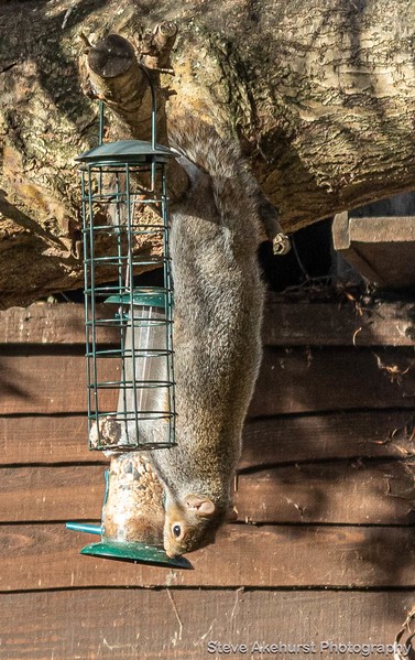 This is as well captured image. It appears our friend has polished off the fat balls already! The colours are very similar and the squirrel is well camouflaged in places. As it is a portrait format and to concentrate our focus on the squirrel I would be tempted to crop off the right hand side and make this more of an upright 'letterbox'. Nicely timed image. |