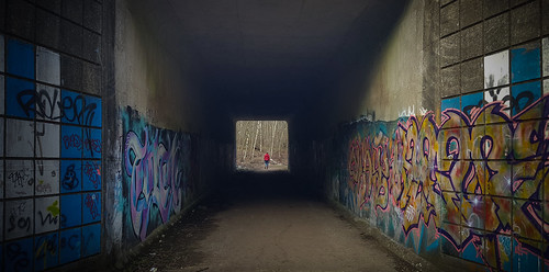 The exposure here as been well controlled to give a good range of tones and detail in the lighter areas. The composition does give us a good lead in towards the figure although I may have cropped out the outside graffit areas and made this into a square format which I think gives a stronger lead in and greater 3D depth. |