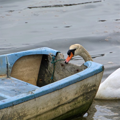 Another well timed image taken at precisely the right time. The exposure is spot on too and clearly retains detail in the all important white plumage of the swan. The only comment I can make would be to crop off the top to exlude that large expanse of water and concentrate the interest on the swan and the boat. Always good to see a good image with a story attached. |
