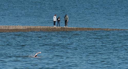 I like an image with a story and this is a good example. Technically it is very good with great sharpness, exposure and detail. I like the composition with the contrasting construction stretching out in the sea. The swimmer is perfectly placed but to really make this it would have been great if the figures were further out to the right to balance the composition. Obviously I realise the photographer had no control over that and had to time his exposure with the view he had before him. |