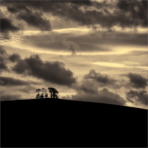 The trees are the smallest part of this image but our eye is instantly taken to them as they appear to stand defiant against that big sky. I debated about the colour and wondered if I would have gone for a full monochrome treatment. This colour does add an air of stormy atmosphere to this though. |