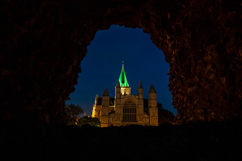 I have seen this frame used before but here the photographer has gone further and used it in the evening. The shutter was tripped at just the right time to retain that lovely deep blue sky colour. The artificial lighting has created the additional strong colours. Obviously, I don't know where the photographer stood but I wonder if they could have raised the camera more so that the cathedral fills the frame more and is not so severely cropped at the bottom. Well done though for taking a nightime picture before the sky turns black. |