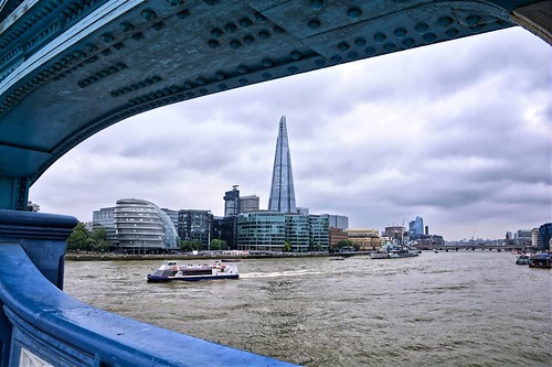A very good use of the bridge structure as a frame nicely encapsulates this view. The weather conditions were not great but this lower contrast lighting has created great detail throughout the exposure range. The Thames pleasure boat is an important extra that further sets the scene. |