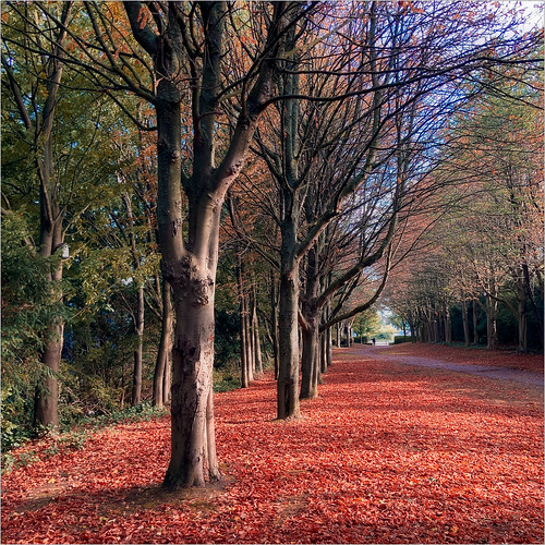 Everything about this shouts 'Autumn', especially the colours of course. The square format has been expertly used and shows how powerful this seldom used format can be. The composition is excellent with a lead in taking us all the way through. Initially I thought the image was empty, but no, in the far distance is a solitary figure which acts as a full stop. Brilliant. |