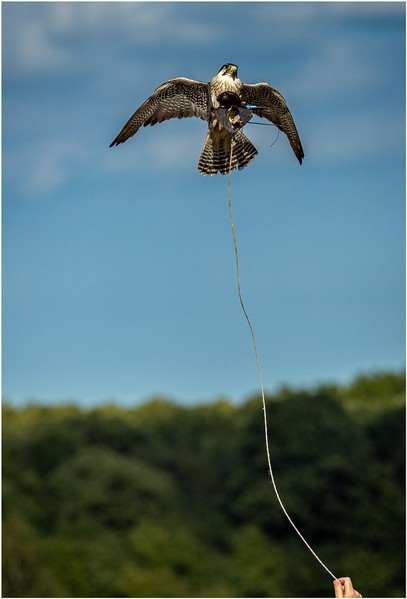 This is all about timing which is absolutely spot on. Conditions are great as are the technical aspects including focussing and shutter speed. The bird is brilliantly placed above the treeline area. For me the most important addition is the hand which although small in the image space provides an anchor to the line. Remove that hand and the image weakens considerably. Well done. |