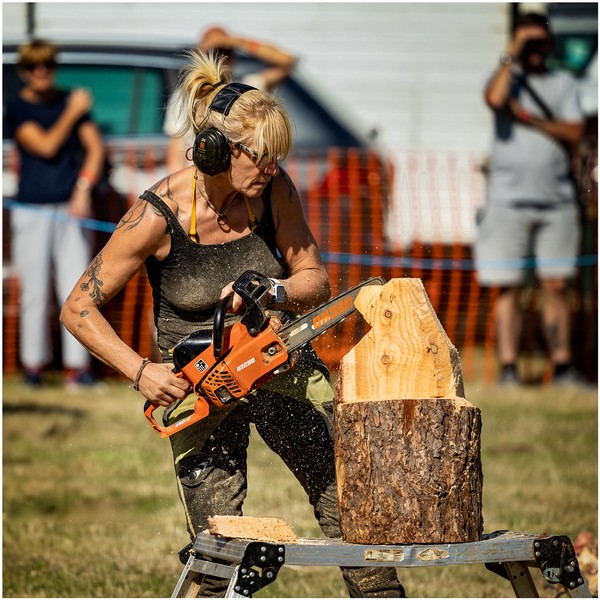 The wood carver with her extremely dangerous looking equipment is excellently rendered here. The focussing and depth of field has isolated the subject beautifully although the background is unfortunately a bit fussy. Everything else is nicely observed and the shutter was tripped at the optimum moment. |