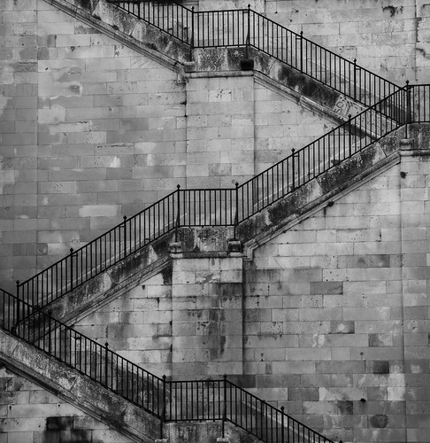 I like how the photographer here has cropped in close to concentrate on the excellent shapes and lines created by the steel stairs. What the image needs to complete it is a figure carefully positioned somewhere, perhaps a third of the way up or down to add a finishing touch to it. I like the use of monochrome here. |