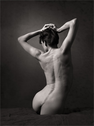 This is another nude study and like the others it is beautifully lit with a wealth of detail and an interesting pose. The other similar images in this collection do have a tad more contrast and the dark backgrounds work slightly better than this one to my eyes but nevertheless it a great quality image. |